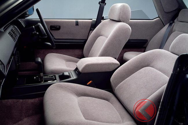「アートフォース・シルビア」のキャッチコピーで1988年5月に発売され、斬新でスタイリッシュなデザインやFR駆動、高性能な4気筒ツインカムエンジンの採用によるスポーティな走りが現在も支持されています。展示モデルは1988年式の中間グレード「Q’s」です。