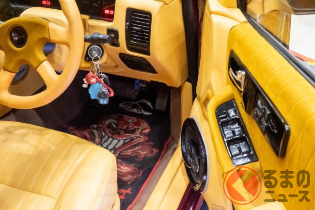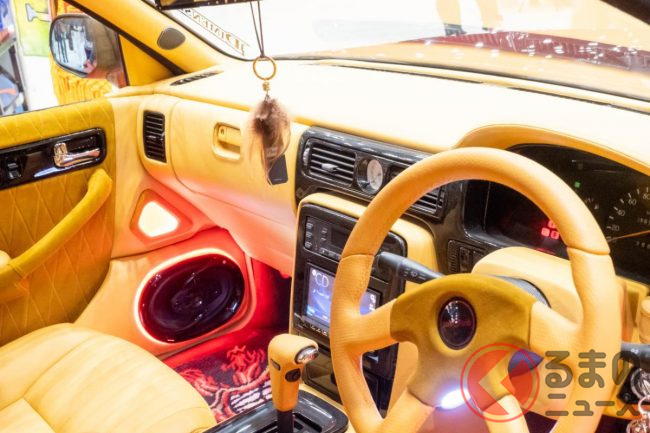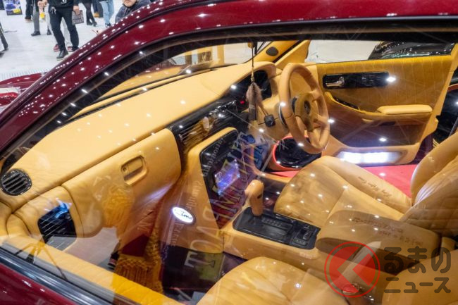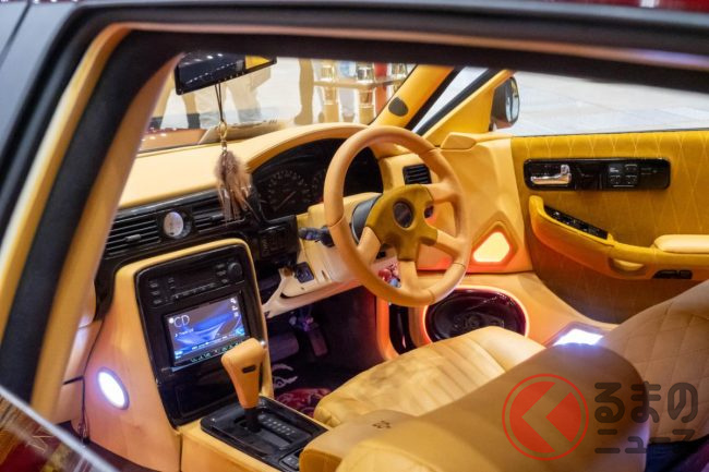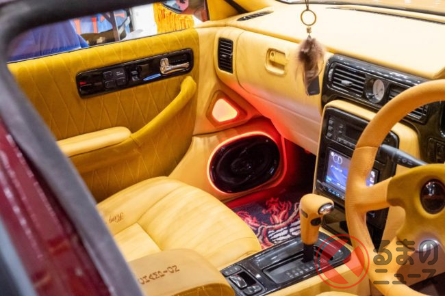目がない!? 強面すぎ「フロントフェイス」の「上級セダン」実車展示! 豪華すぎ内装でまさに「走る応接室」なカスタムマシンの正体とは