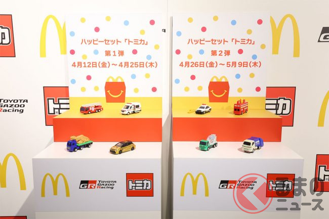 この企画は、全国のマクドナルド店舗で4月12日から発売されるハッピーセットの「トミカ」登場を記念するとともに、ハッピーセットにトミカが初登場してから10周年を迎えることを祝うものです。