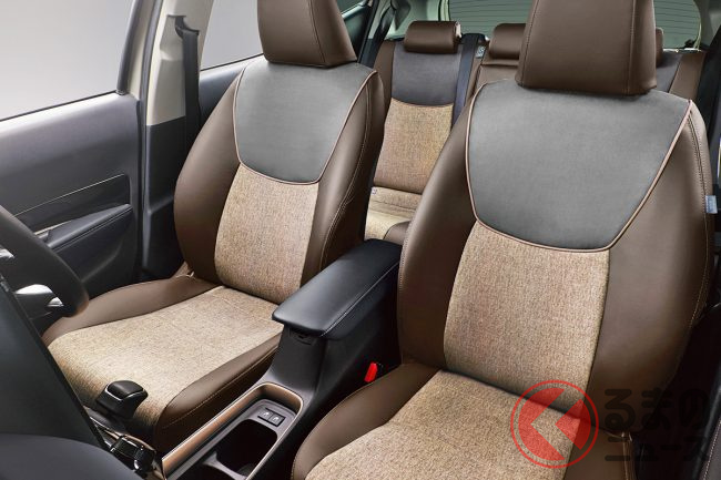 このうち、Zラフィネ専用のシートカバーはブラウンを基調とし、背もたれはブロンズのパイピングを施したブラック、背もたれ下部と座面の中央は織物素材風のライトブラウンでコーディネートしています。