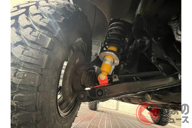 また、座席頭上には悪路走行に必須なハイリフトジャッキや、後部に金属シャベルなども装備、「見た目だけじゃないオフロードの雰囲気」を装備品で演出。
