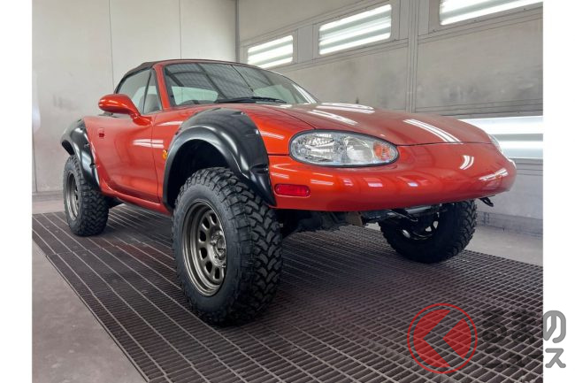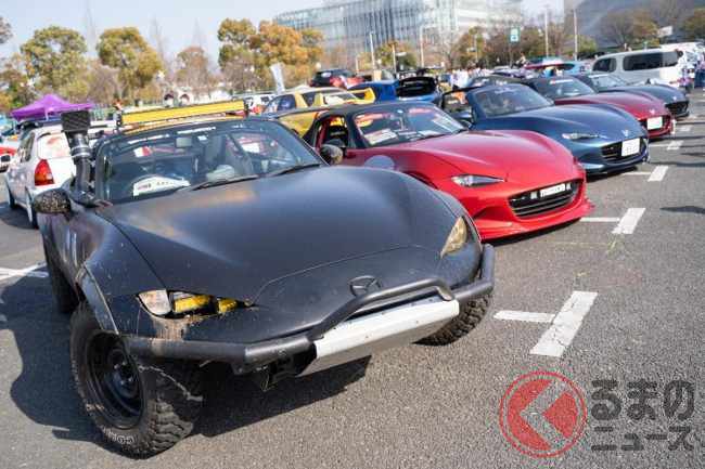 マツダ「痛ロードスターSUV」実車展示! ゴツさ爆発に注目度高し!? なぜ2人乗りスポーツをオフ化?