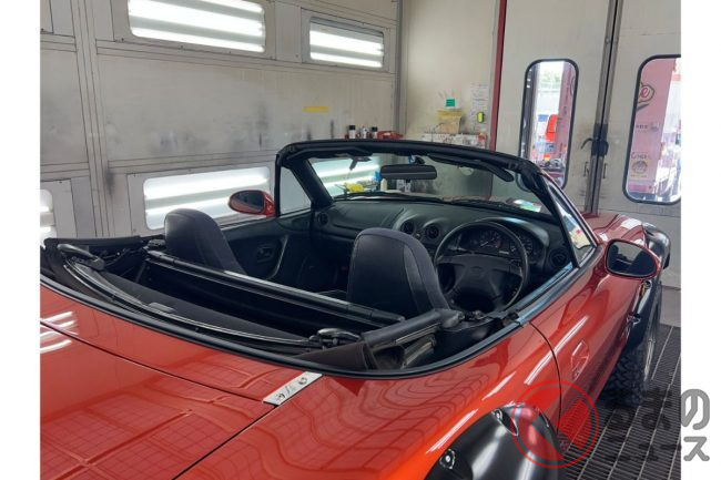 ここっとさんのロードスターは元々、街中でよく見かけるようなソウルレッドプレミアムメタリックのボディ、車高も普通のロードスターでした。