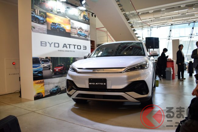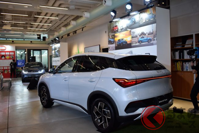 会場では、同社のミドルサイズSUV「BYD ATTO 3(ビーワイディー アットスリー)」と、コンパクトEV「BYD DOLPHIN(ビーワイディードルフィン)」、2024年半ばに発売予定のハイエンドEVセダン「BYD SEAL (ビーワイディーシール)」を展示しています。
