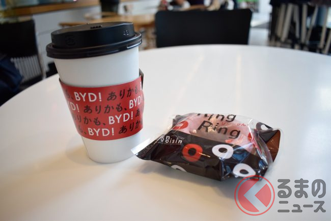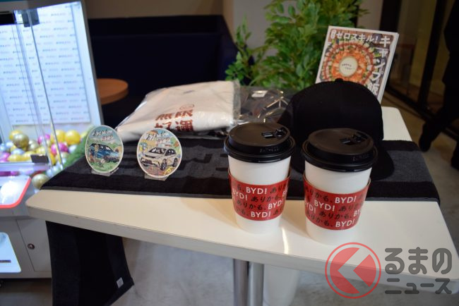 さらに会場内では、BYDオリジナルスリーブがついた「forucafe 原宿店」のコーヒーやダージリンティーを楽しめ、BYDの公式LINEアカウントを友だち登録し、簡単なアンケートに回答すると、ドリンク1杯と焼きドーナツが無料でプレゼントされます。
