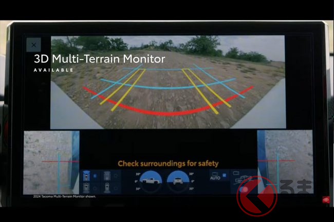 今回公開されたのは、オフロード性能を高めた、「TRD Pro」モデル。タフ感の高い直線的なデザインとなっている他、オフロードタイヤが装備されており、走破性の高さが伺えます。