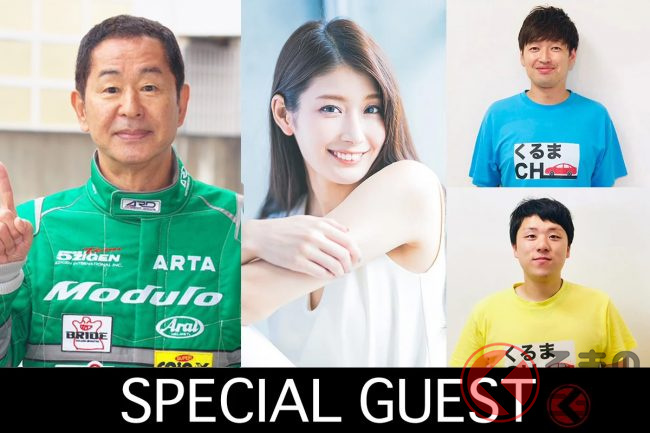 また、スペシャルゲストとしてドリフトキングの愛称で有名な元レーシングドライバー「土屋圭市」さんのほか、モデルやタレントとして幅広く活躍している「沢すみれ」さんも参加。もちろん、くるまのCHANNELのレギュラーメンバーである、お笑い芸人コンビシューマッハの「五味侑也」さんと、男の趣味系YouTubeチャンネルの「欅(けやき)まつや」さんも参加します。