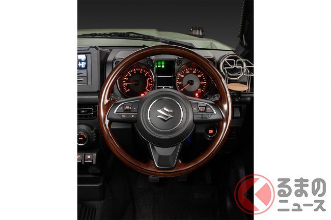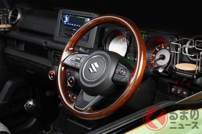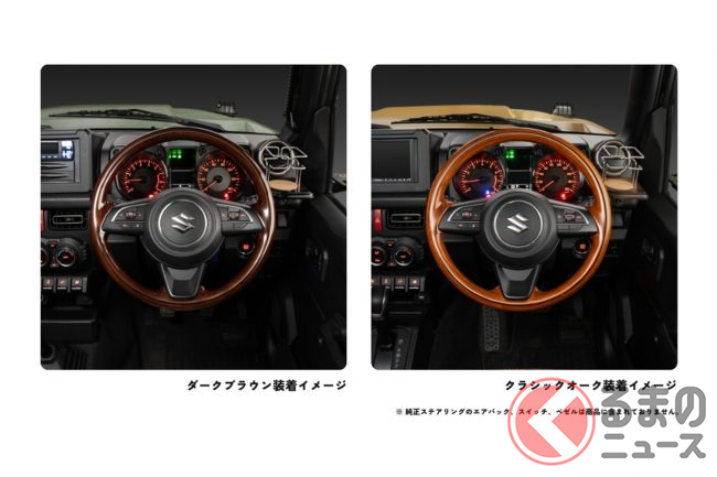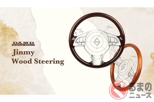 ダムドが2024年4月12日17時、現行型のスズキ「ジムニー」(JB64)/「ジムニーシエラ」(JB74)専用の全周ウッドステアリングの抽選応募受付を開始しました。