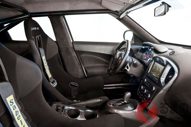 ただボディ自体はジュークのものを使っていたため、大パワーに対応できるように補強が施されたほか、レーシングカーばりのロールケージやフルバケットシート、5点式のシートベルトなどが追加され、車両重量はGT-Rよりも重い1800kg台となっていました。