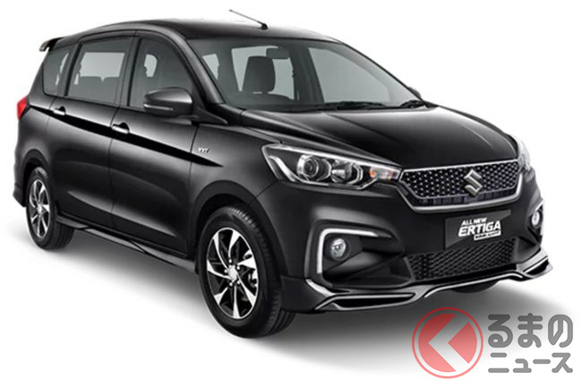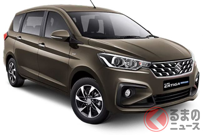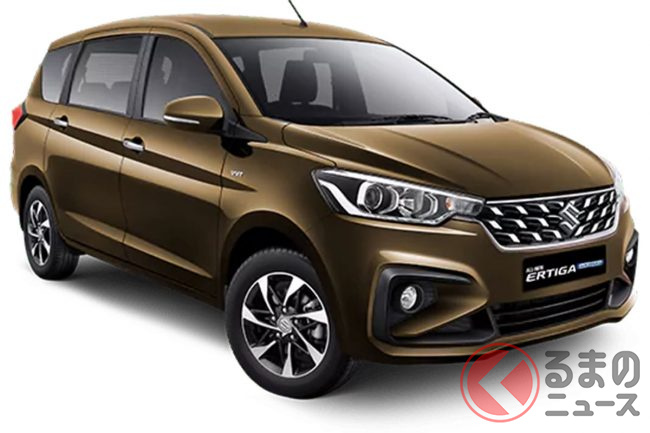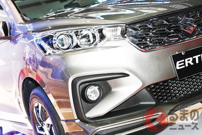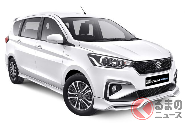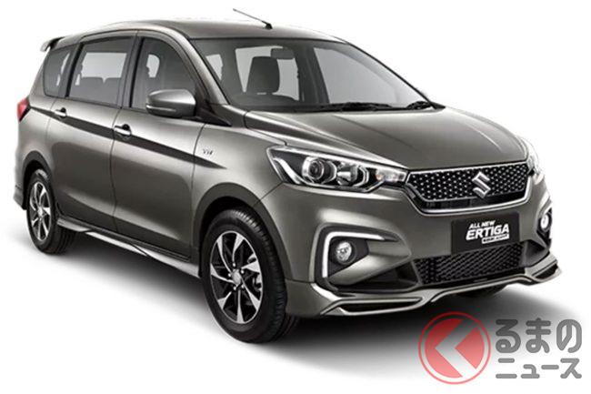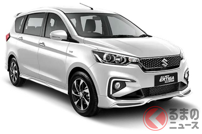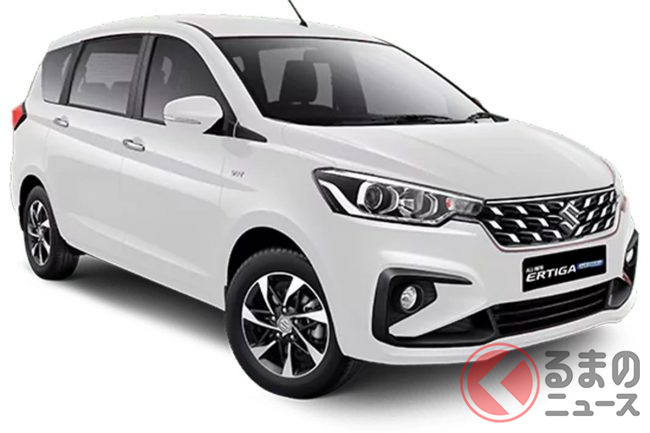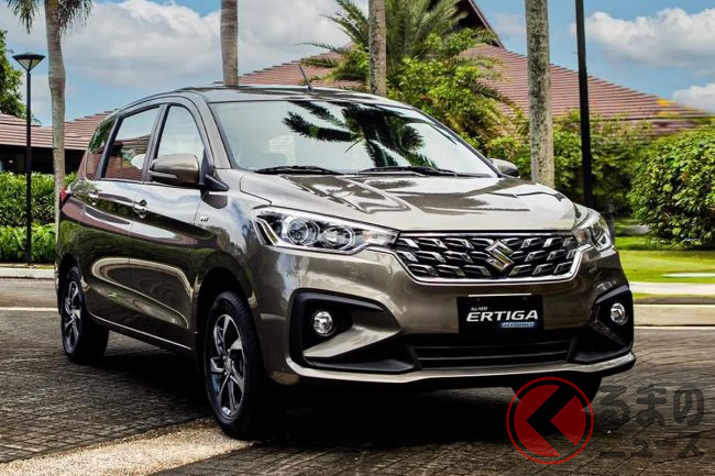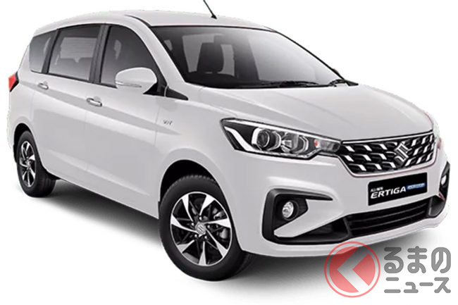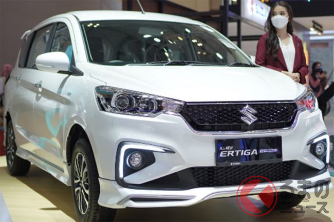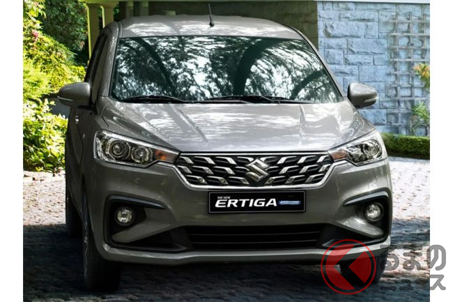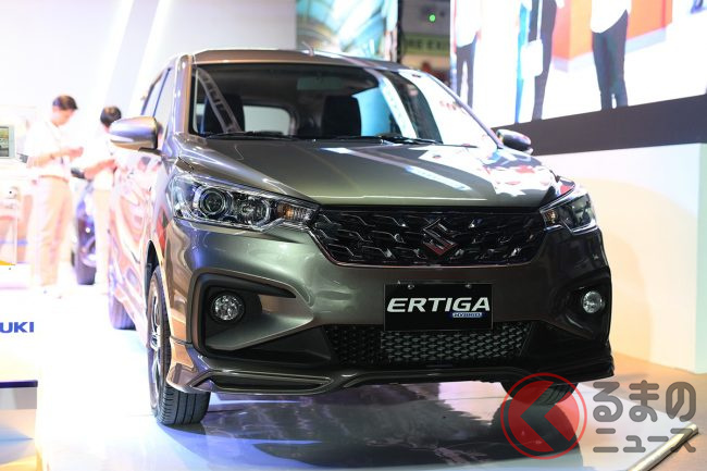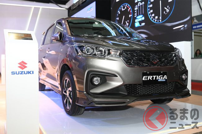 スズキの最新「コンパクトミニバン」実車公開! 「MT×ハイブリッド」設定もありでアンダー260万円! 精悍マスクの「エルティガ ハイブリッド」比で登場