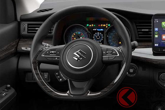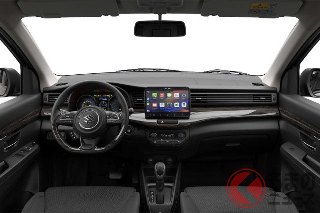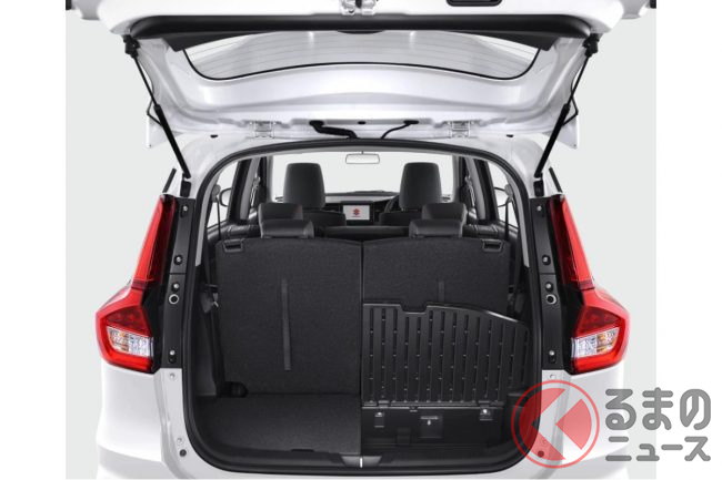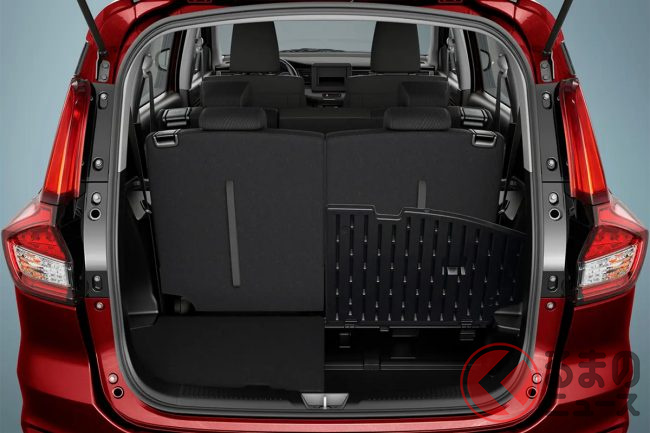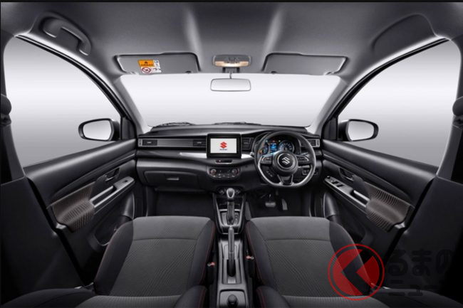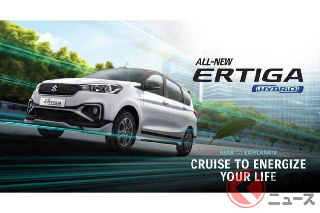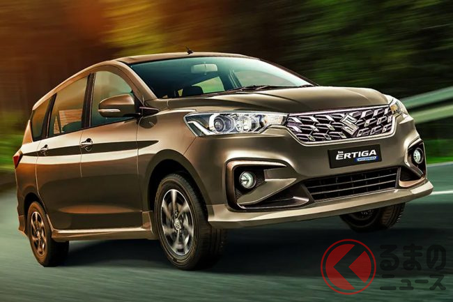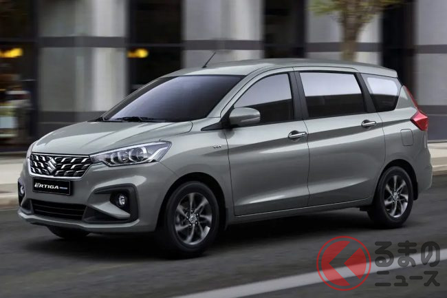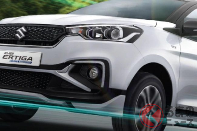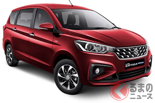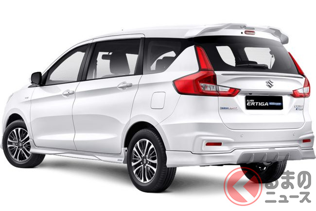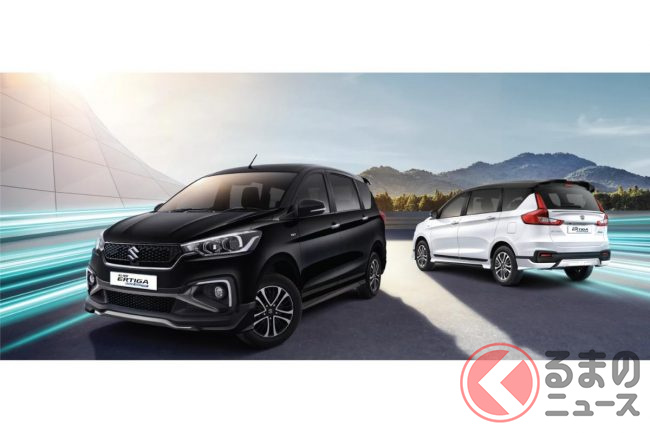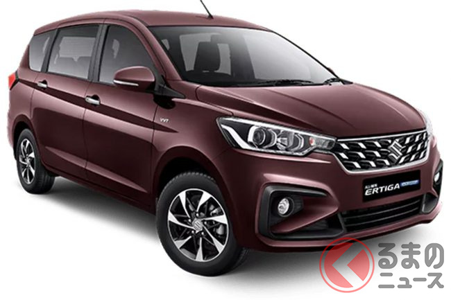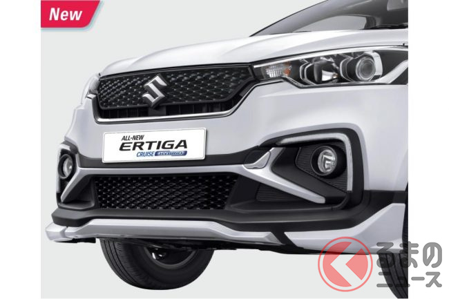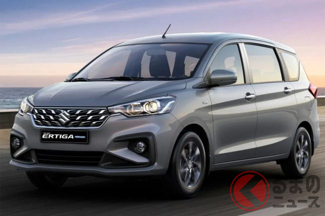 スズキの最新「コンパクトミニバン」実車公開! 「MT×ハイブリッド」設定もありでアンダー260万円! 精悍マスクの「エルティガ ハイブリッド」比で登場