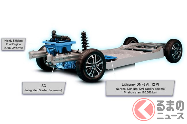 最新ハーテクトプラットフォームをベースに、パワートレインは最高出力77kW、最大トルク138Nmを発揮する1.5リッターガソリンエンジンとISG(Integrated Starter Generator:モーター機能付き発電機)、リチウムイオンバッテリーを組み合わせたマイルドハイブリッドシステムを搭載し、アイドリングストップ機構も備えます。