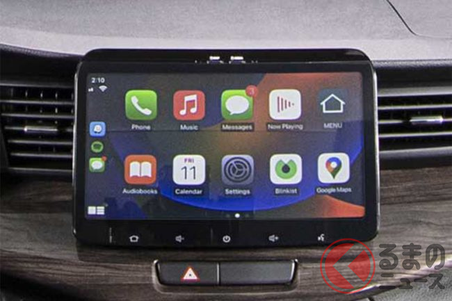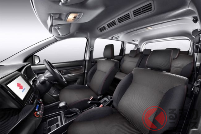 室内は7人乗り・3列シートレイアウト。インパネは木目調パネルで加飾され、スマートフォン連携可能な10インチのタッチスクリーン式センターディスプレイを備えるなど、上質感あるインテリアとなっています。