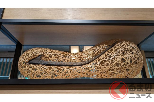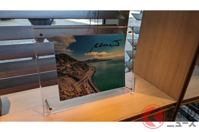 新たなLEXUS MEETS…は、モリゾウこと会長の豊田章男氏の想いとこだわりが詰まった空間に生まれ変わり、所々にクルマが走り見つめてきた「道」をモチーフにした展示物などが置かれています。