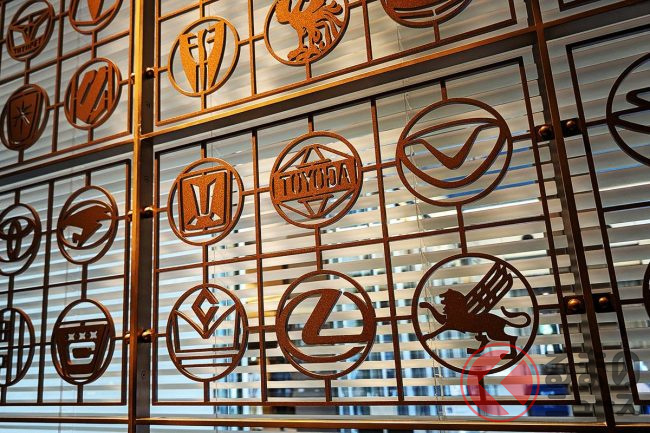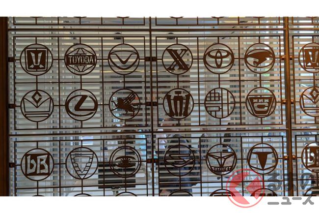 トヨタとしては、これまでの歴代モデルに装着されたエンブレムを施設の壁面に配置。カローラのCやクラウンの王冠、センチュリーの鳳凰といった他にもハリアーの鷹など様々なものがあり、「これは●●だ!」と当てるのも楽しいです。