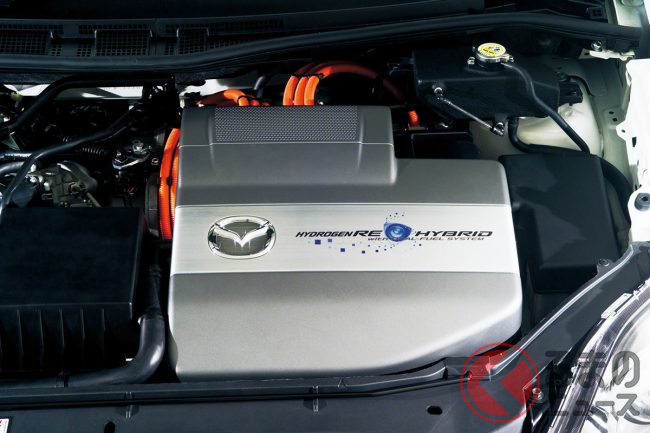従来のハイドロジェンREとは異なり、水素ロータリーエンジンとモーターを組み合わせたシリーズハイブリッド方式を採用。ハイドロジェンREよりも出力を約40%向上した110kWを発揮し、水素での航続距離を倍の200kmに大幅に改善したと言います。