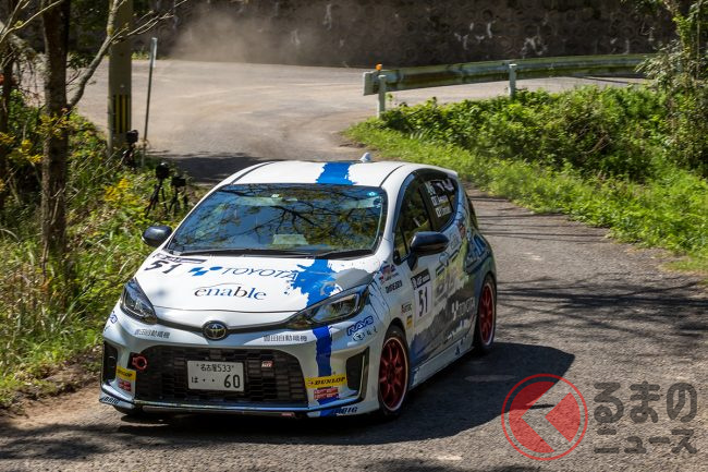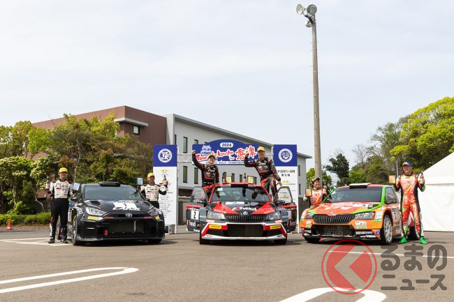 ラリー三河湾を制した勝田範彦・木村裕介組のGRヤリスRally2は、事前テストからトラブルを抱え、SS1を4位で終えますが徐々に速さを取り戻し、Leg1を2位で終えました。一方、新井・松尾組は絶好調で、Leg1の全てのステージでベストタイムを記録しました。