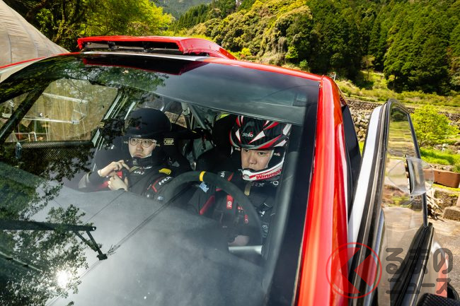 そのため、久万高原をスキップするチームも見られます。海外修行時代も含めるとR5・Rally2車両の経験はいちばん豊富と言ってもいい新井選手は、プライベーターとしてのハンディはあるものの、タイトル獲得への意気込みも見せてくれました。