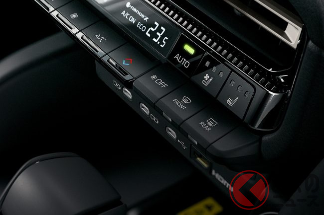 ドライバーシートからさほど手を伸ばさずともすべて操作できるインターフェイスは、美しさと機能性を備えており、新世代ランドクルーザーにふさわしいものとなりました。