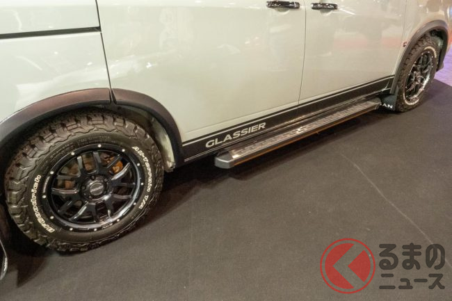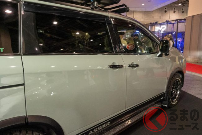 また家族をターゲット層にしているといい、車高を4cm上げアウトドアシーンでも活躍するような走破性であったり、車両の側面には年配者の乗り降りをスムーズにするためのサイドステップが装着されていたりと、家族みんなで楽しめるさまざまな工夫も見られます。
