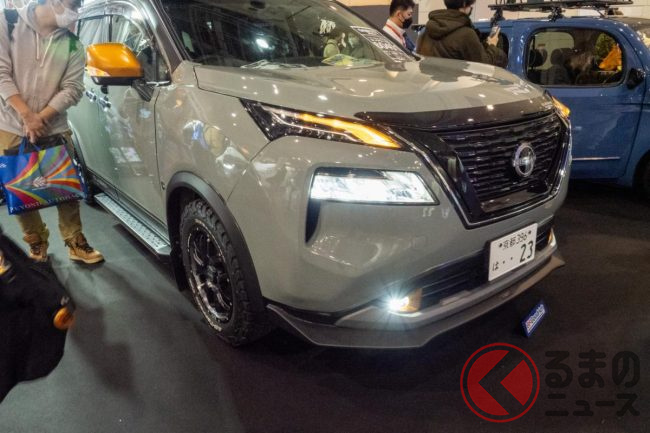 ベース車には現行の「エルグランド」を用いて、大胆にも「エクストレイル」のフロントを移植。大幅な変更ですが、実車は違和感なく組み込まれていることが見て分かります。