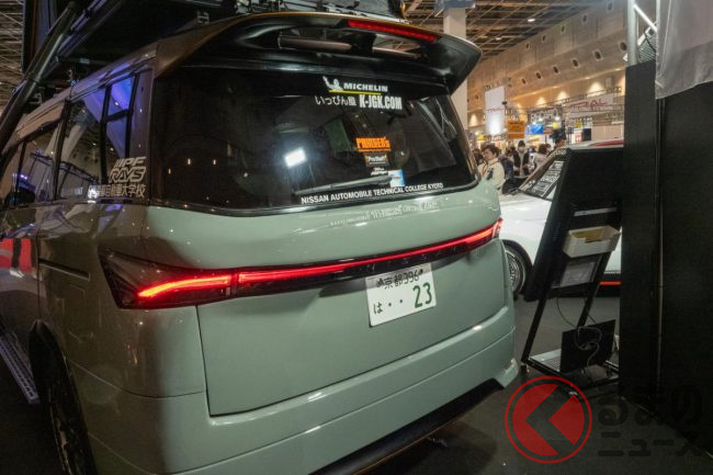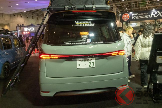日産京都自動車学校のカスタマイズ科は、「エルグランド(E52前期型)」をベースにしたカスタムモデルを大阪オートメッセ2024に出展。多くの反響が集まっています。どのようなモデルなのでしょうか。