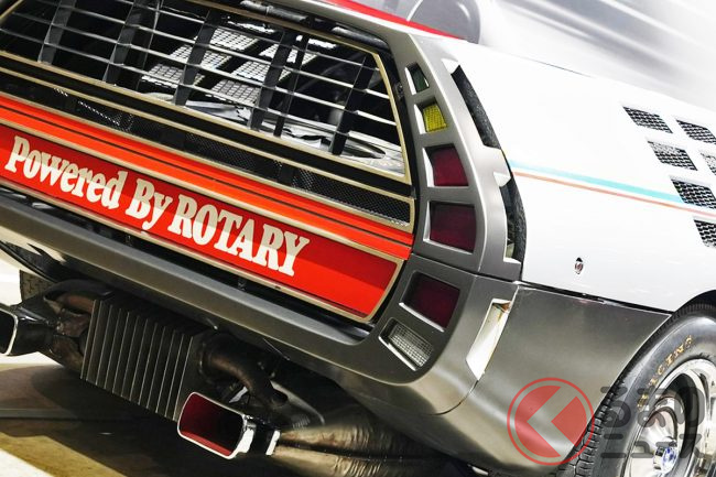 パワーユニットは、レース用にチューニングされた最高出力250馬力の2ローター式ロータリーエンジンをミッドシップに搭載し、4速MTのトランスミッションを組み合わせています。