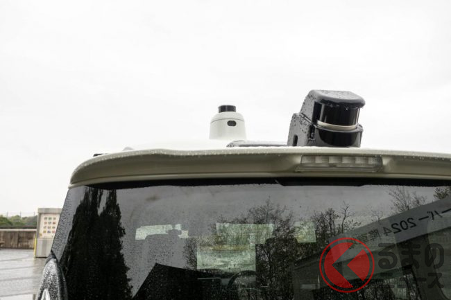 もちろん、自動運転のためソリオはさまざまな追加改造を施しています。まず、車両上部には周辺の人や対象物との距離を計測するライダーセンサーを設置。周囲の物体認識や自分の位置の推定を行います。