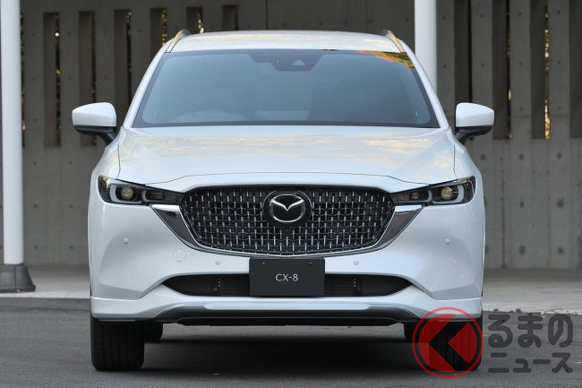 全長5m級! マツダが「FR×直6エンジン」搭載の新型「高級車」初公開! 最上級“3列シート”SUV 新型「CX-80」は「“先代”CX-8」からどう変わった?