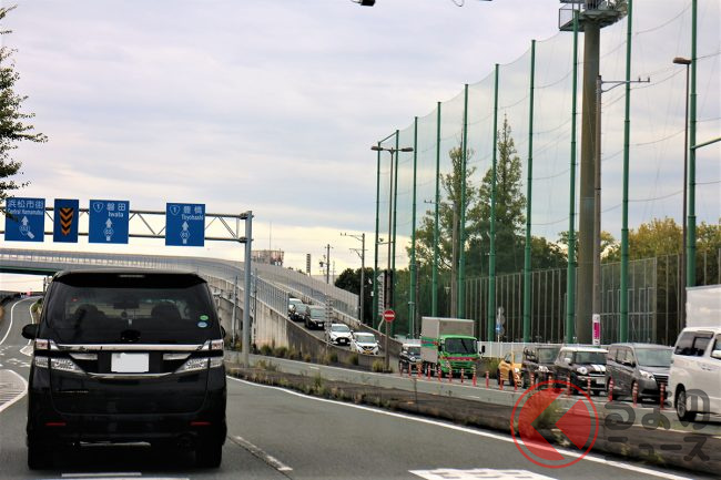 道路の形状によっては渋滞の発生しやすいポイントはいくつもありますが、なかでも道路と道路の合流部はクルマの流れが滞りやすい傾向にあり、混雑が渋滞に発展することも多くあります。
