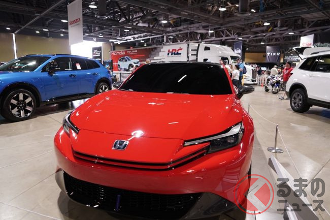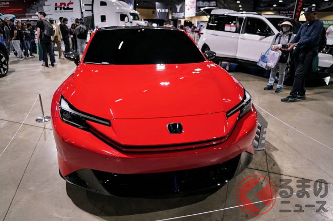 ホンダの赤い「新型プレリュード」初公開! “2ドアクーペ”実車展示で反響スゴい!? 25年登場!? 車名復活で米国でも注目