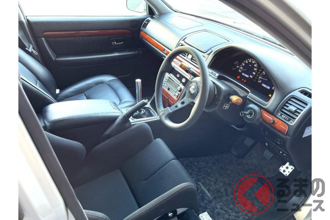 とくに上質なレザーシートにウォールナットをふんだんに使用した本木目のインテリアは、当時のフラッグシップモデルのセルシオに匹敵するほどです。