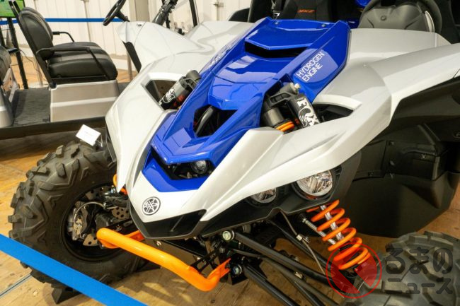 もう1台がヤマハの展開している「ROV」こと四輪バギー「YXZ1000R」の水素エンジン搭載モデル。こちらは、2023年の「ジャパンモビリティショー2023」で初公開されたコンセプトカーです。