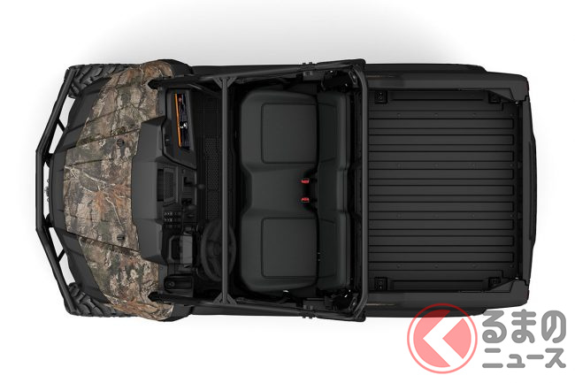 全長114.8インチ(約2915mm)×全幅59.9インチ(約1521mm)というコンパクトなボディに、675ccの4ストロークエンジンを搭載。3速ATと組み合わせています。