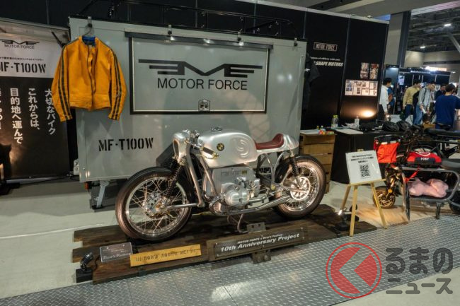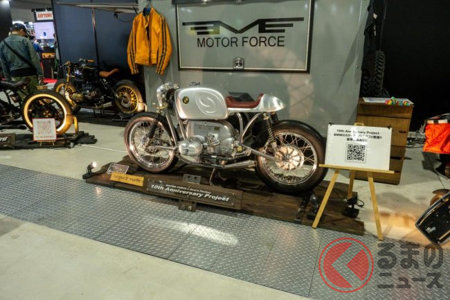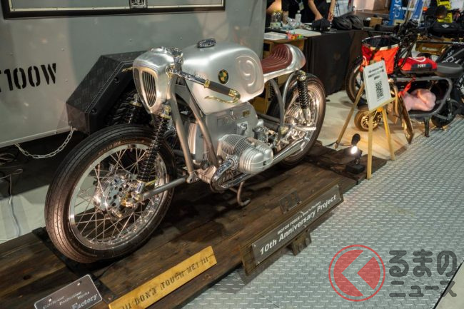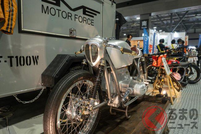 鉄仮面な“BMWグリル”付き「バイク」実車公開! 美しすぎるシルバーボディがたまらない! MOTOR FORCEの「R100/7」とは