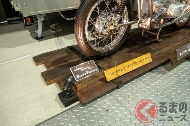 会場のスタッフによれば、ベースになっているバイクはBMW「R100/7」です。とはいえ細部にまで手が入っており、ほとんどワンオフといって良いレベルになるそうです。