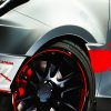 内装はブラックを基調にレッドのアクセントを効かせ、力強いデザインを引き立てました。赤いシートベルト、パドルシフト、アルミニウムペダルなど、モータースポーツを反映したアイテムも取り入れられています。