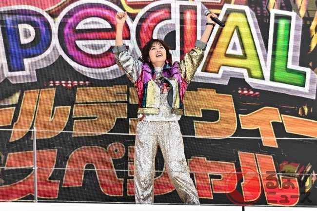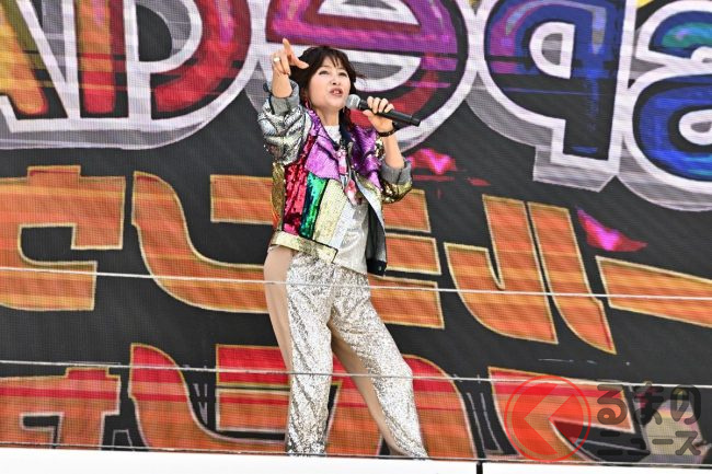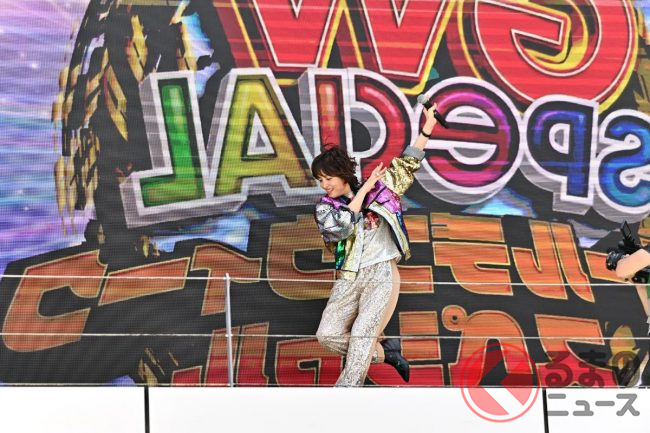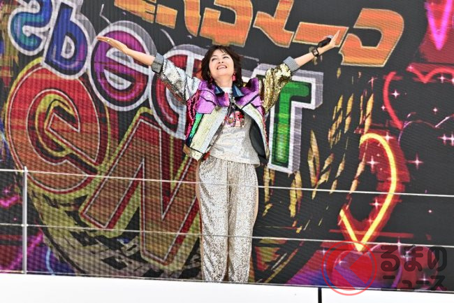 DJ KOOさんにも負けないド派手な衣装で登場した荻野目洋子さんは『悲しきヘアピン・サーカス』や新曲の『Let‘s Shake』、そして『ダンシング・ヒーロー』を熱唱し、キレキレのダンスも披露し会場を盛り上げます。