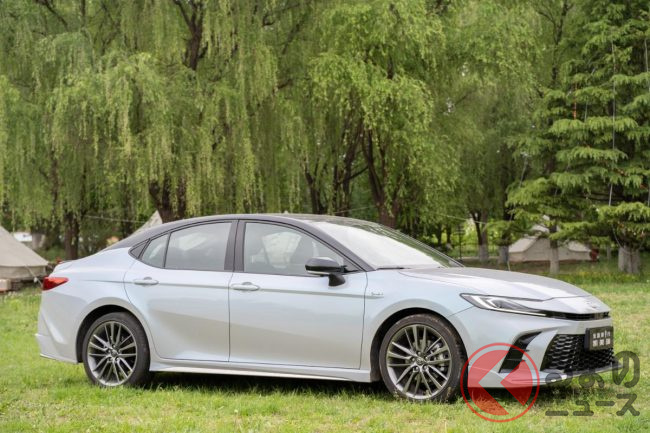 トヨタが新型「FF最大セダン」登場! 斬新“サメ顔”の特徴は!? 洗練内装にも注目! カムリの日本発売は無い? 中国で試乗