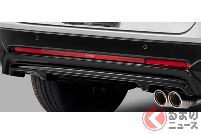 メカニカルな部分ではe:HEV専用のスポーツサイレンサーが特徴的。ルックスのみならずスポーティな音色にも拘り開発されたといいます。