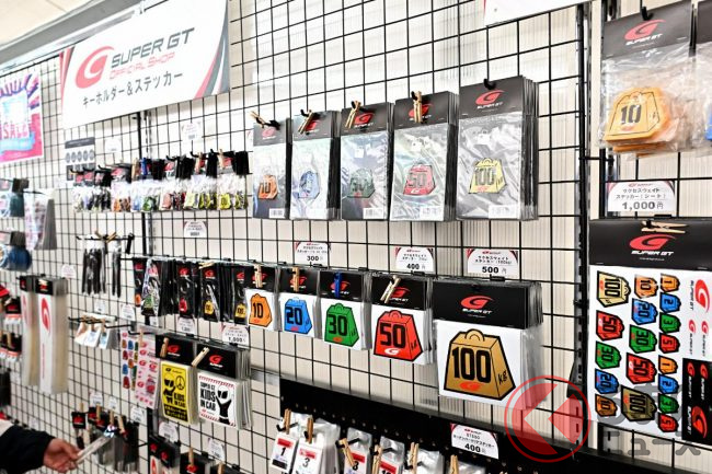 スーパーGTオフィシャルショップならではの、全チームのカーナンバーステッカーやスーパーGTらしいサクセスウェイトステッカーなども販売されています。