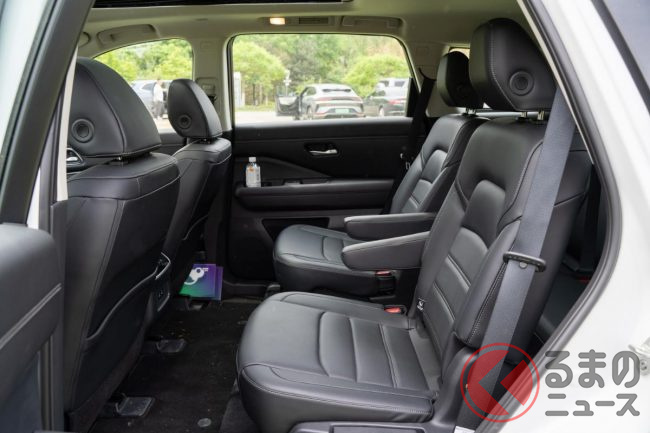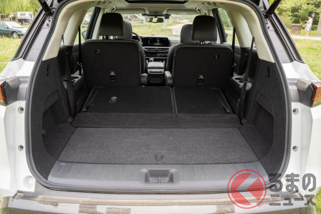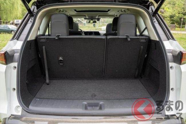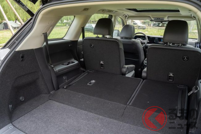 ルーフが低いながらも、室内空間は窮屈さを感じさせません。乗車定員は6人乗りと7人乗りが選択可能で、それによって2列目が2人掛けか3人掛けかに変わる形で、3列目シートは倒してフルフラットにすることも可能です。