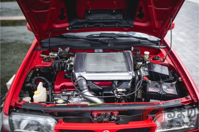 このSR20DET型はスペシャリティスポーツクーペ「シルビア」(S13型)などにも搭載されたものと同型ですが、4連スロットルを採用するなどの出力向上が図られたスペシャルバージョンとなっていました。
