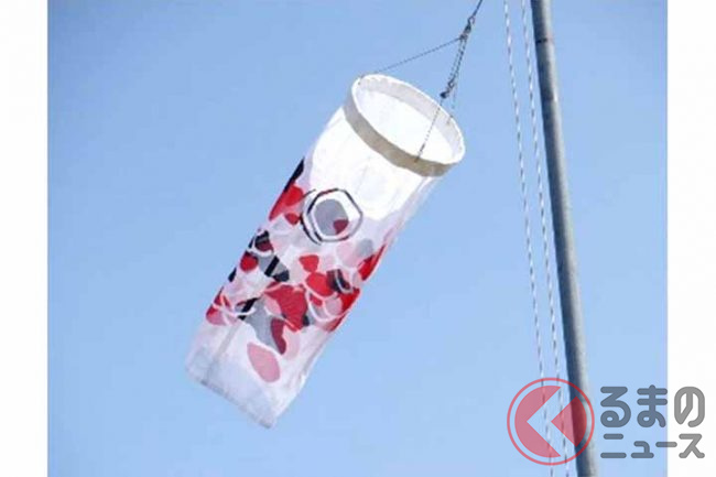 この鯉のぼりのような設備は正式名称を「吹き流し(ふきながし)」といい、ドライバーが風の向きや強さを目で判断しやすいように設置されています。