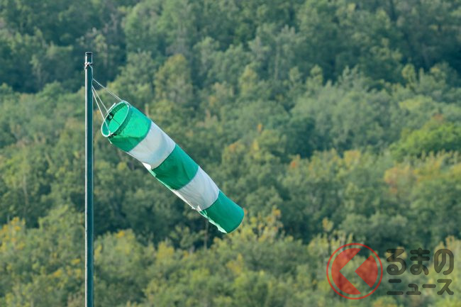 特に風速10m/秒は走行中の車両が横風にあおられる感覚を受けるレベルの風速であるため、吹き流しが水平になびいているのを見たらクルマの速度を落とし、ハンドルをしっかり握って運転することが大切です。