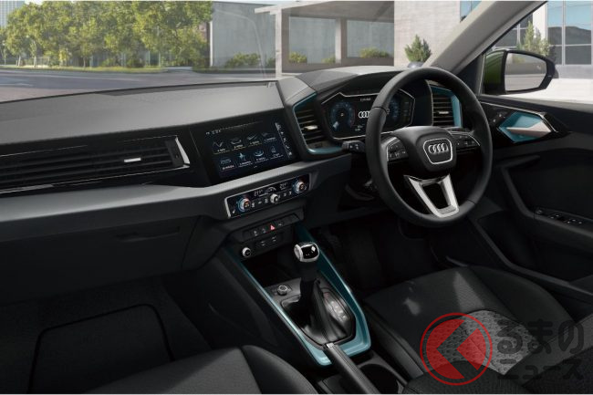 エクステリアでは、特別装備となるブラックの「17インチ5アームポリゴンデザインブラックアルミホイール」、215/45R17サイズのタイヤに加えて、ミトスブラックメタリックの「コントラストルーフ」、「ブラックAudi rings &ブラックスタイリングパッケージ」が標準装備となり、黒を基調とした外装でクールなイメージを高めたといいます。