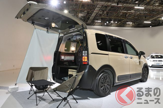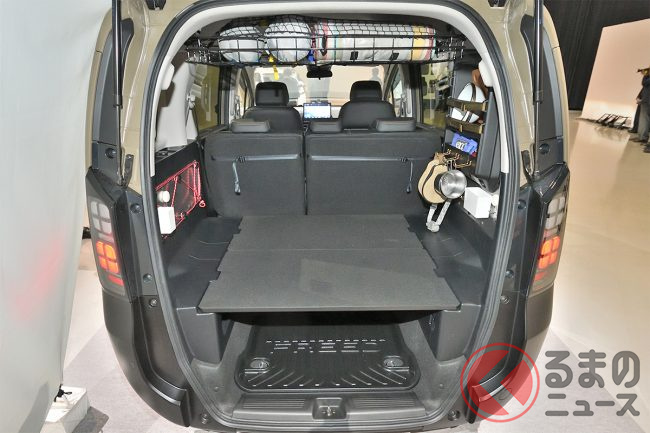 ホンダ新型「“小型”ミニバン」初公開! 全面刷新で「車中泊」モデル“新”設定! ちゃんと「寝られる」3代目「フリード」の「真っ平らベッド」仕様とは