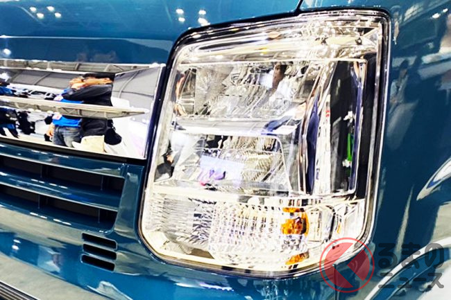 スズキ「新型軽バン」実車展示! オシャな「デニムブルー」×精悍ライトがカッコイイ! 快速ターボ搭載の「新型エブリイ」登場