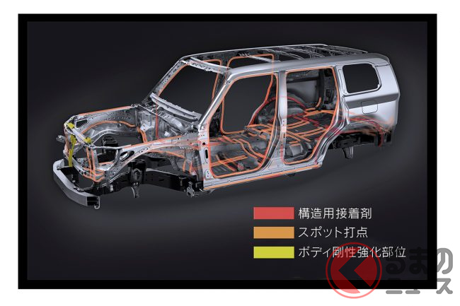 GXは、ボディオンフレーム(ラダーフレーム)構造を採用し、優れた悪路走破性と上質なインテリアを両立させた高級本格オフローダーです。
