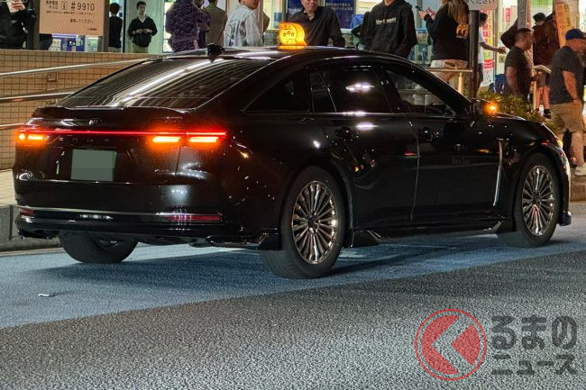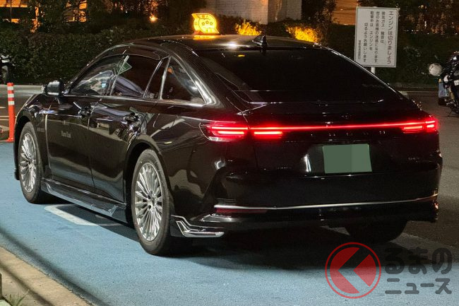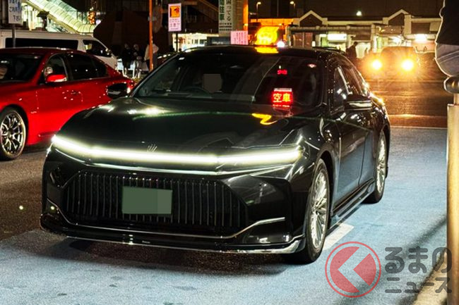 全長5m超え!? トヨタ「クラウンタクシー」登場! 漆黒ボディ×行灯が夜に映える! 目撃された様子は?